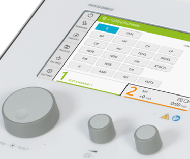 - 3 User guidance and overview: Perfected user guidance through combination of 7" touch screen and PHYSIOMED one-button operation for comprehensive overview of the therapy parameters including all therapy timers; multifunctional intensity controls allowing for fast intensity reduction and quick switching between channels