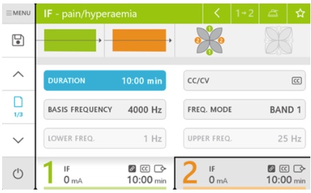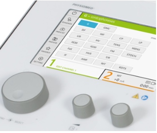 - 3 User guidance and overview: Perfected user guidance through combination of 7" touch screen and PHYSIOMED one-button operation for comprehensive overview of the therapy parameters including all therapy timers; multifunctional intensity controls allowing for fast intensity reduction and quick switching between channels