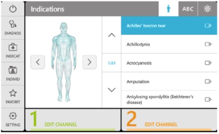 - 2 Treatment index with filtering functions based on body region, desired therapy effect or per alphabet for quick location of the desired treatment proposal