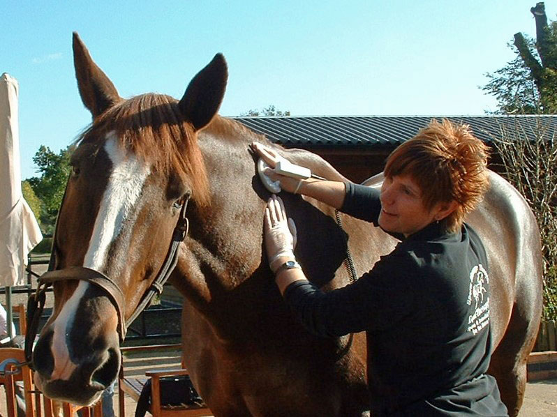 In 2006, shortly after PhysioPod (Sister company of newly launched PhysioEquipment) began exclusive distribution of DEEP OSCILLATION® in the UK/ROI, Mary Fickling, Company Director, began email exchange with Bodo Wisst, former German Physiotherapist to the Peruvian Taekwondo National Team. Bodo had, for two years managed to replicate the success he had achieved with humans using DEEP OSCILLATION® in the Equine World. The short clip right shows just how well this clinically proven therapy is received by the horse. World leading equine sports massage teacher, Gilliyan Carter-Morgan of Equi-Therapy UK began using the therapy soon after and began showing students in her courses. After the initial trial of the therapy, Gilliyan provided the following feedback "Under the supervision of veterinary surgeon, Matthew Barlow of Home Farm Equine, Nottinghamshire & Emma Hawthorne of Flawborough Equine & Hydrotherapy Centre, Nottinghamshire DEEP OSCILLATION® Therapy was used on everything from tendon strains to haematomas, post-op surgeries & scar tissue, the results were outstanding. Horses responded extremely well to this form of therapy, even those that seem fearful of clippers had no issue with DEEP OSCILLATION® therapy. Owners have seen swellings reduce with only one application & even splints have been successfully dispersed. The therapy has been extremely beneficial in the rehabilitation of tendon injuries with impressive results in a matter of weeks." Now eleven years on, many equine therapists are utilising this non-invasive treatment, achieving effective results for the horse and their rider. Feedback regularly appears on VetClick. DEEP OSCILLATION® provides faster regeneration after training, traumatic injury, damage from overstraining and operations – for muscle aches, strains, inflammation, swelling, wounds.